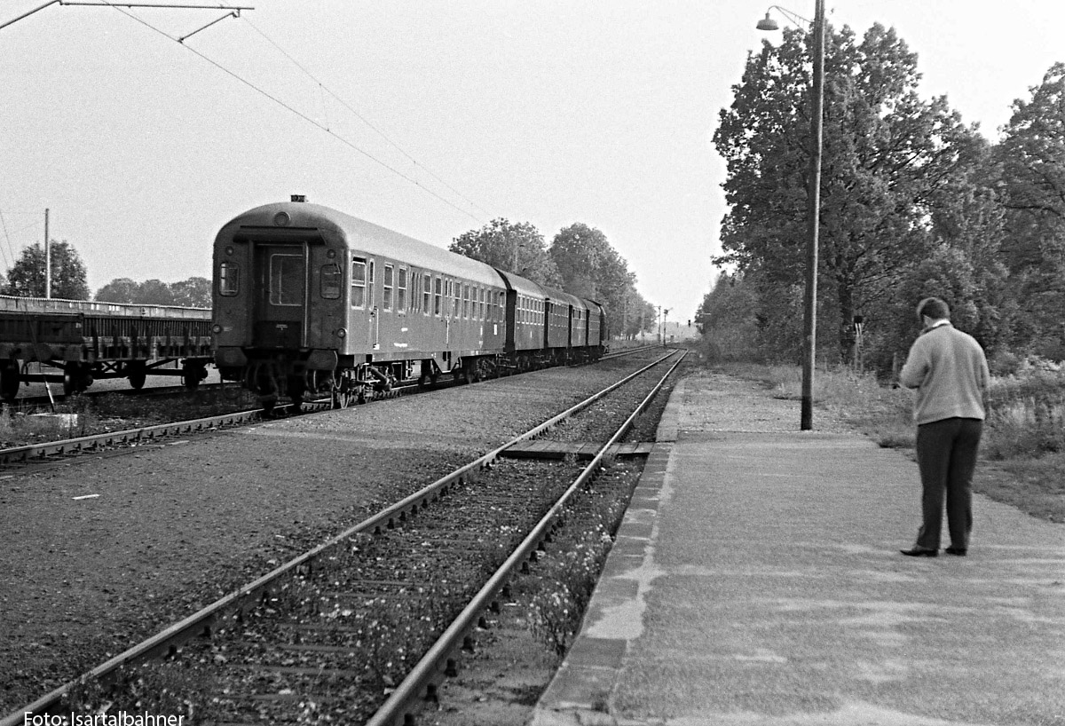 10.) Als am 13. Oktober 1971 die 211 023 mit einem Wendezug einfährt, ist die Elektrifizierung schon abgeschlossen (seit dem 23. Mai). Dass nur das Hauptgleis überspannt ist, zeigt schon, dass dem Bahnhof als Betriebsstelle bald das letzte Stündlein geschlagen hat.