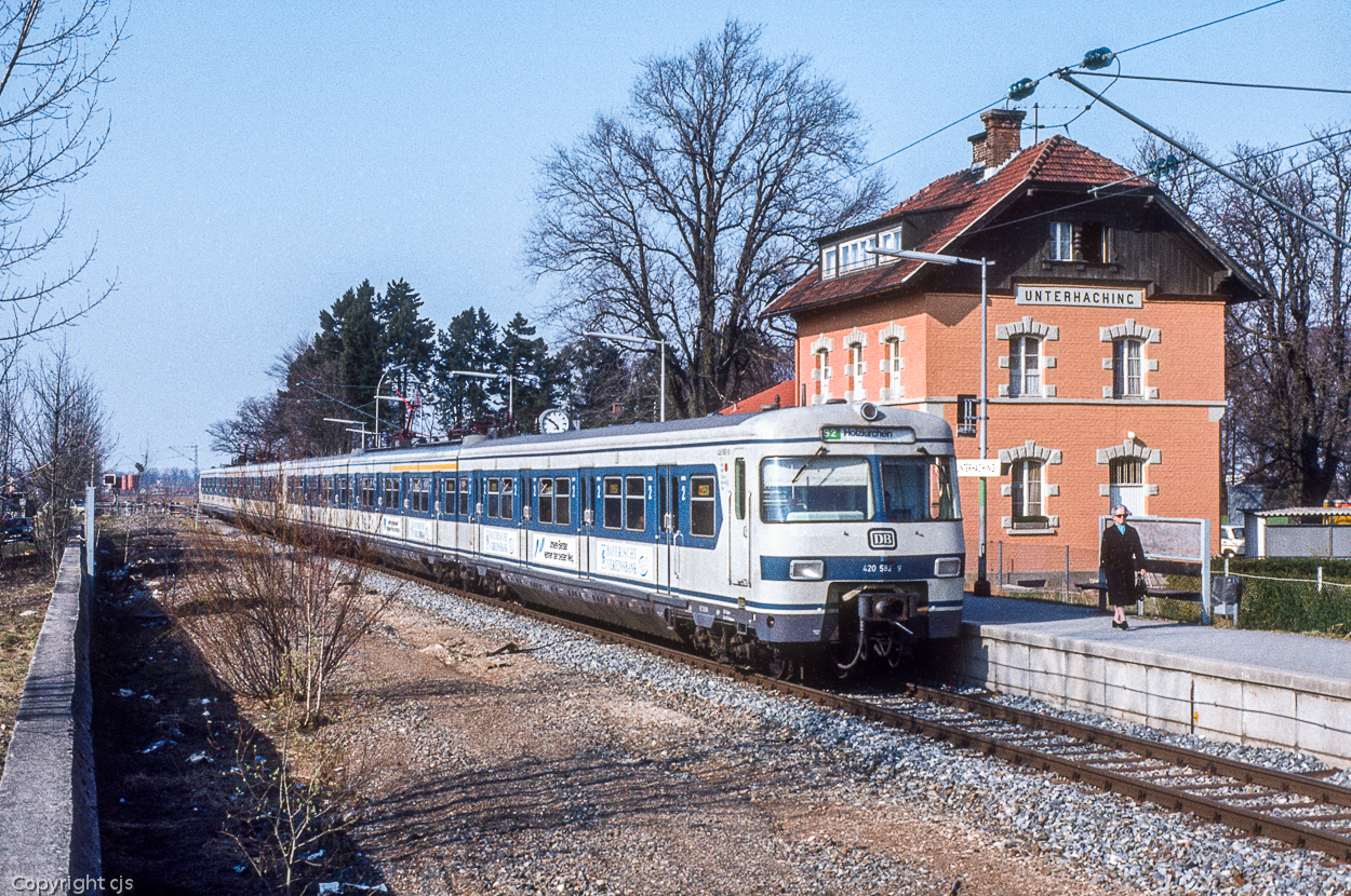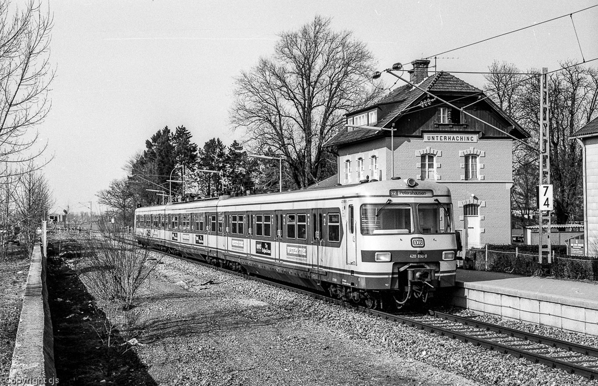3.) 13 Jahre später hält 420 690 auf dem Weg nach Petershausen am erhöhten S-Bahnsteig. Der Bahnübergang ist hier noch vorhanden, aber inzwischen automatisiert. Heute unterquert hier eine Unterführung die Bahn.