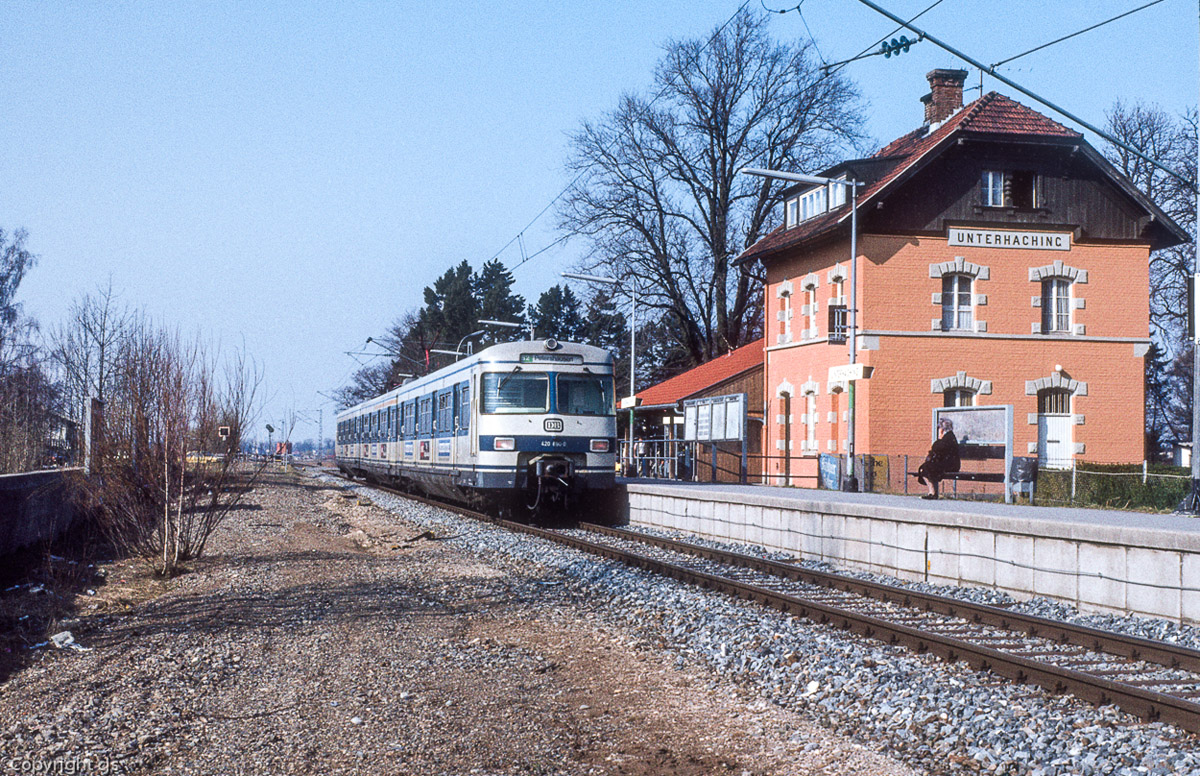4.) Der Kurzzug verlässt Unterhaching. Nächster Halt ist Fasanenpark, dessen Haltepunkt 1971 eröffnet wurde.