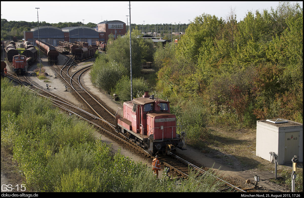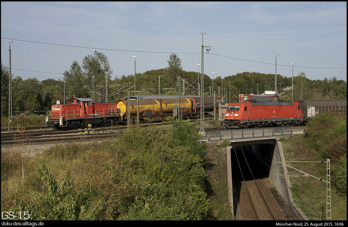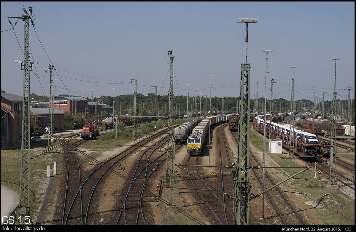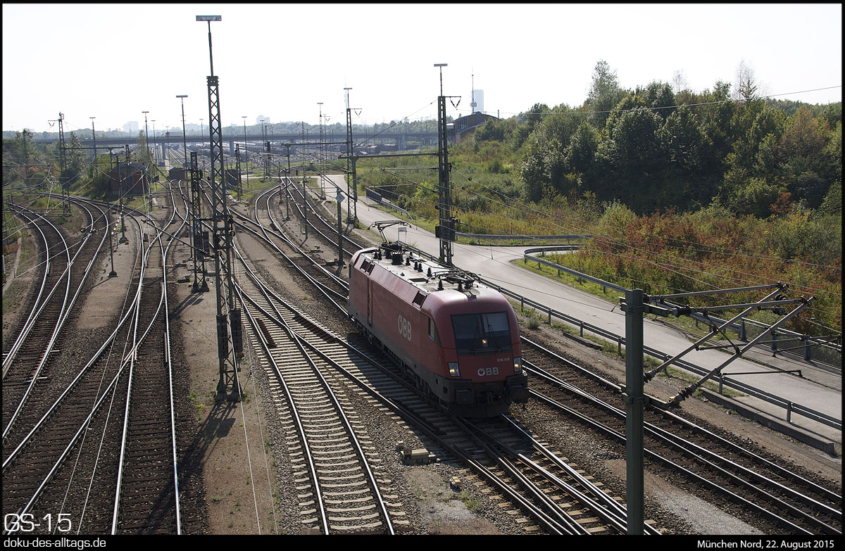 1.) Der Ablaufberg am 22. August 2015. 1016 003 rollt Richtung Einfahrgruppe auf der westlichen Seite. Die drittgebaute Lok der Reihe 1016 wurde im Sommer 1999 bei den ÖBB in Dienst gestellt.