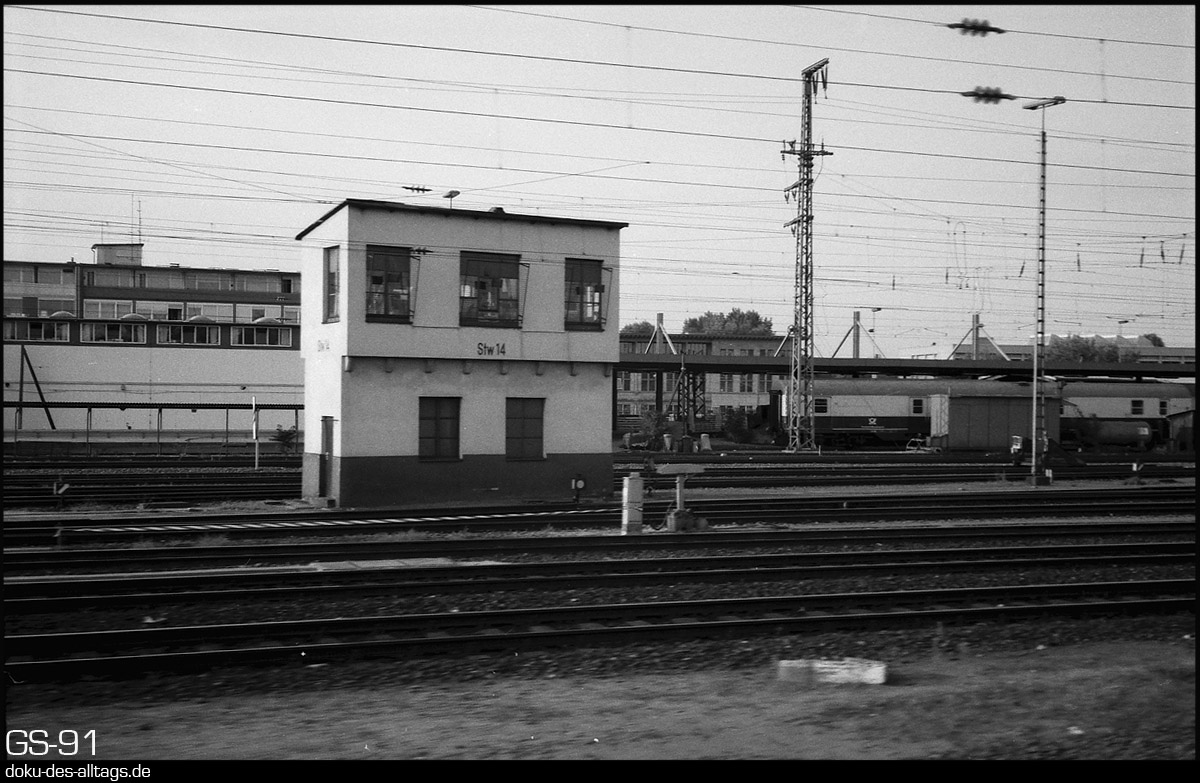 9.) Stellwerk 14 im östlichen Vorfeld, Bauart Noell, in Betrieb von 1910 bis 1992.