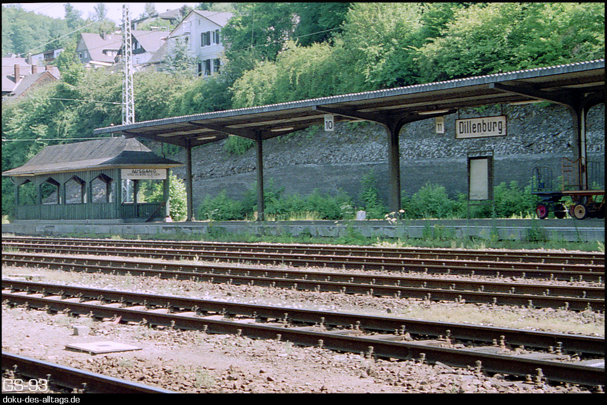8. + 9.) Der 1993 noch vorhandene, jedoch gleislose Bahnsteig der Gleise 10 und 11, von wo aus die Züge nach Ewersbach und Wallau abfuhren.