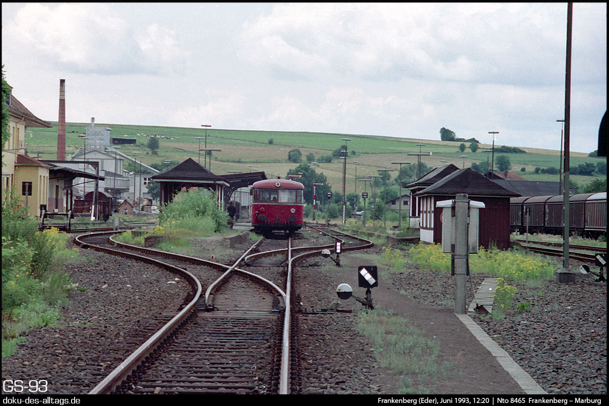 8.) Die gleiche Ansicht wie auf Bild 5, nun jedoch mit dem nächsten Zug nach Marburg, diesmal in Form eines Schienenbusses der Baureihe 796.