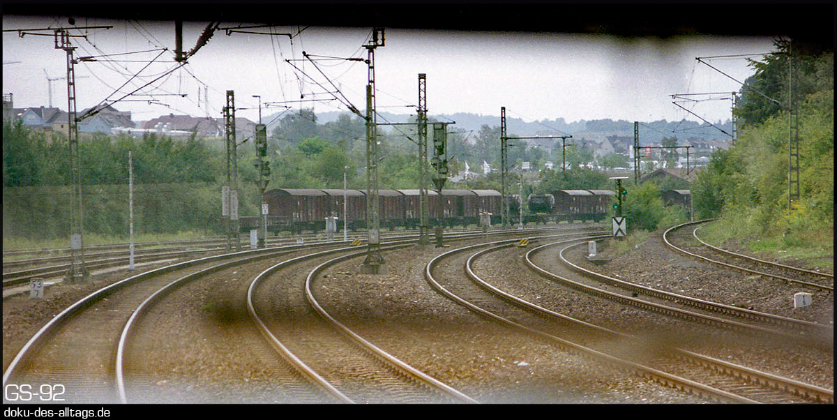 1.) Einfahrt in den Bahnhof Limburg. Die Strecke Frankfurt – Eschhofen – Limburg ist seit 1986 elektrifziert. Die Oberleitung reicht in Limburg bis über die westliche Einfahrt hinaus.