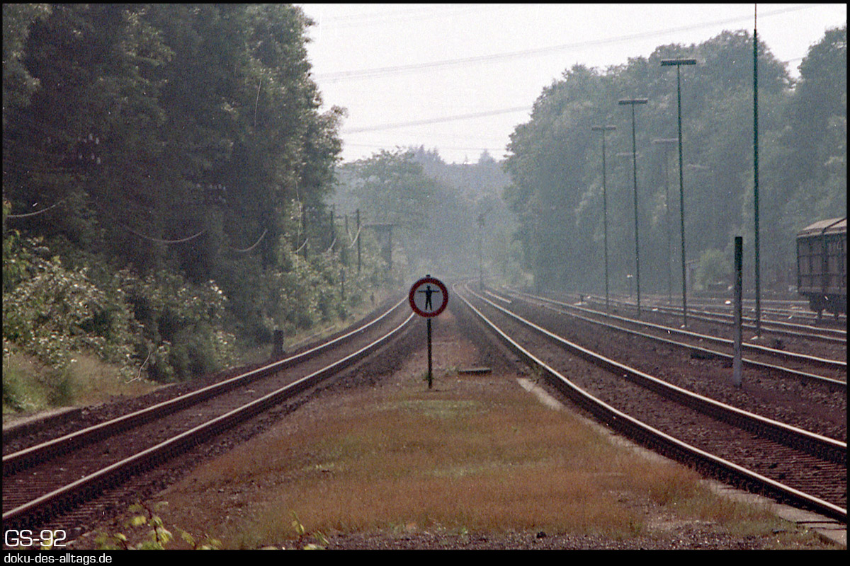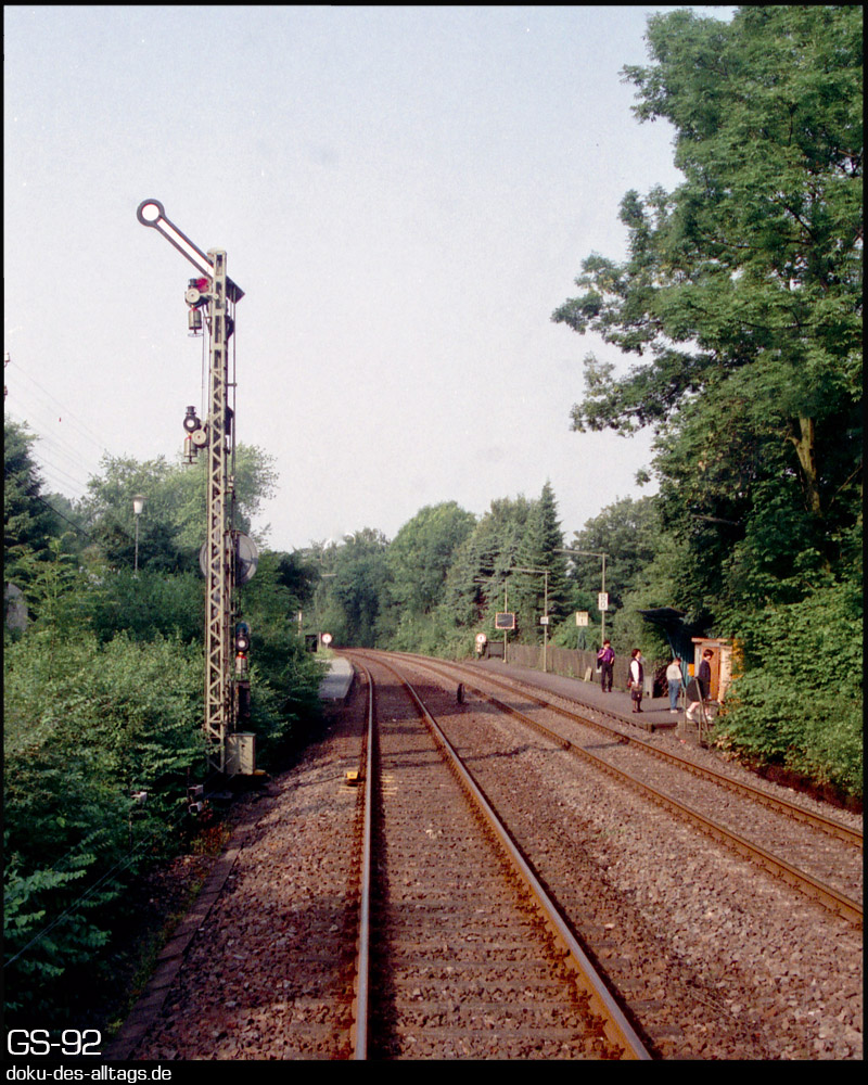 1.) Beim Haltepunkt Mettmann West (heute Mettmann Zentrum) befindet sich das Einfahrsignal vom Bahnhof Mettmann.