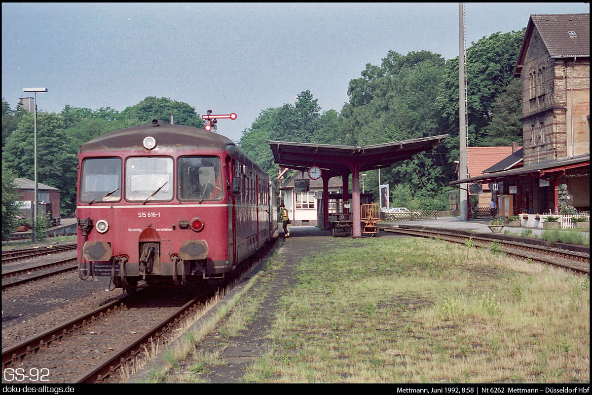 2.) Das Gespann aus 515 616 und 815 807 ist um 8:57 als Nt 6261 von Düsseldorf Hbf angekommen. Die Fahrt dauerte 21 Minuten.