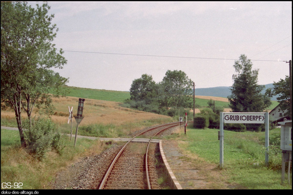 2.) Nächste Stationen sind Zillendorf (km 16,7) und der hier zu sehende Haltepunkt Grub (Oberpf) (km 18,2)