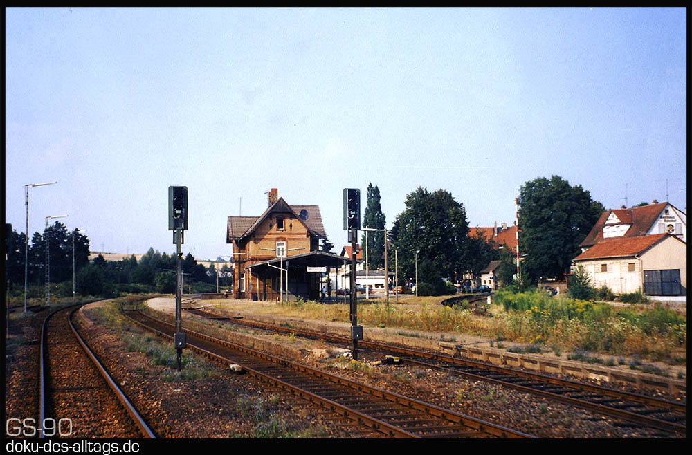 | 10.) Was 1990 noch ein interessantes Gleisbild mit insgesamt 11 Weichen war, ist heute nur noch ein Haltepunkt ohne Ausweichmöglichkeiten. | ||||||