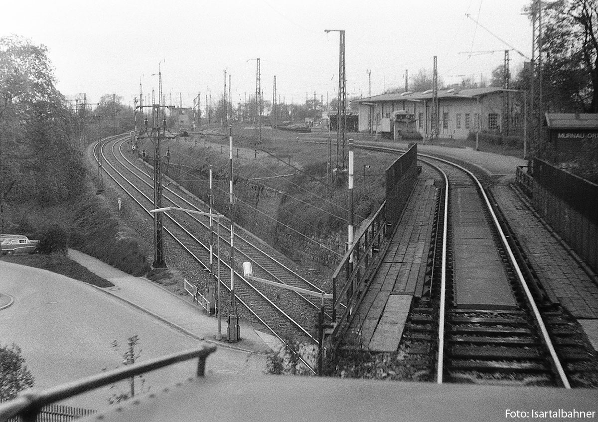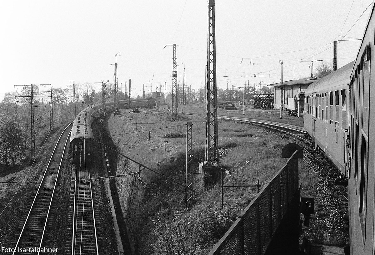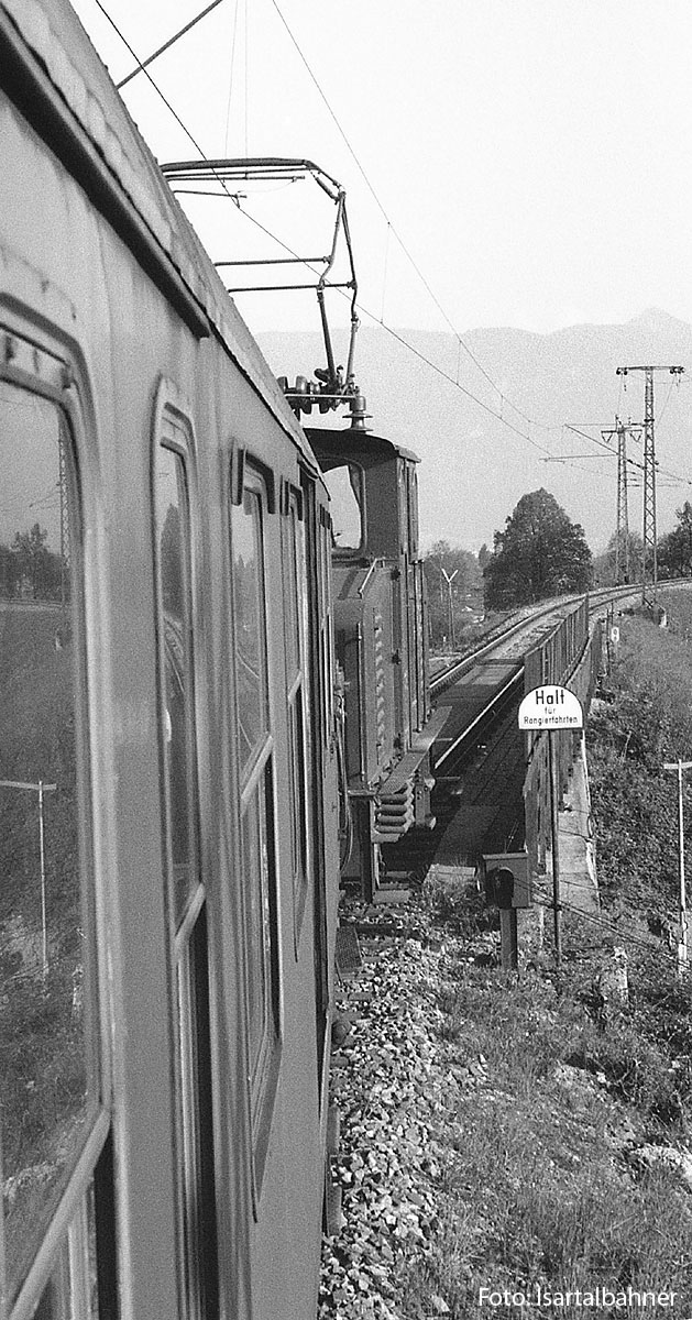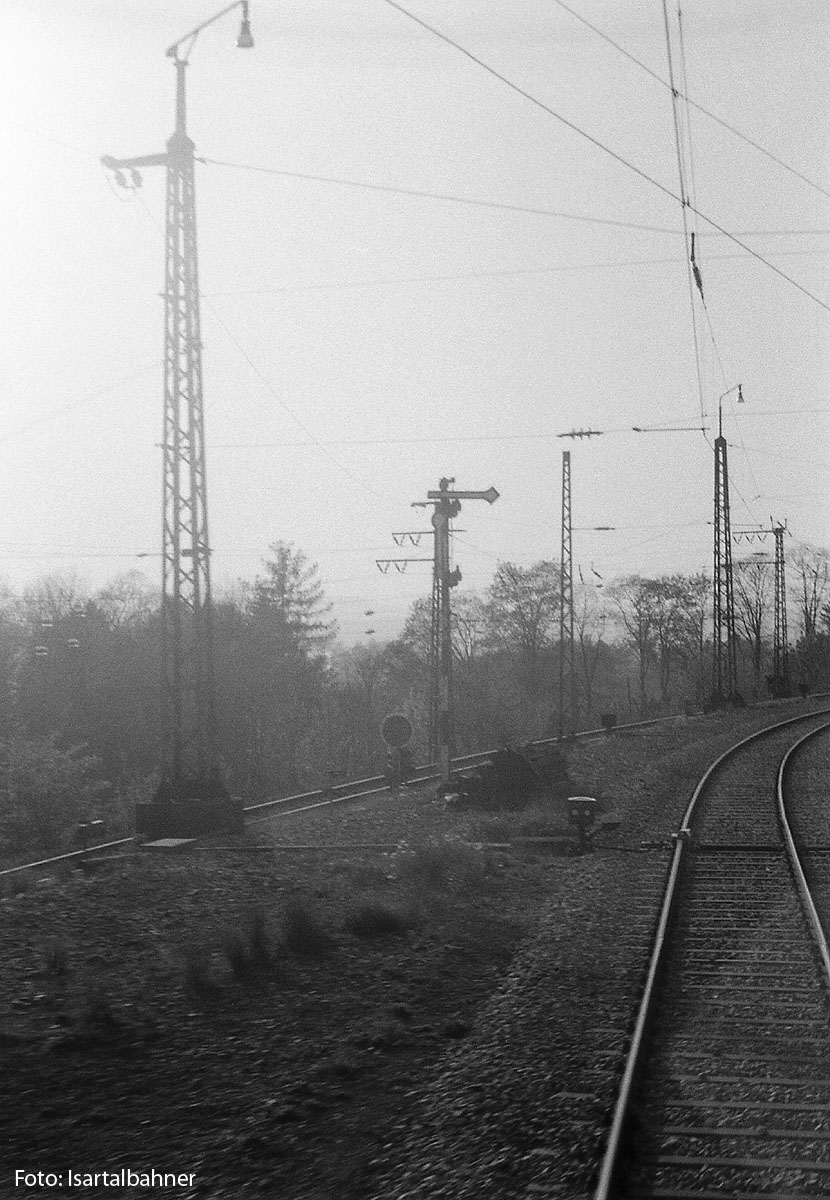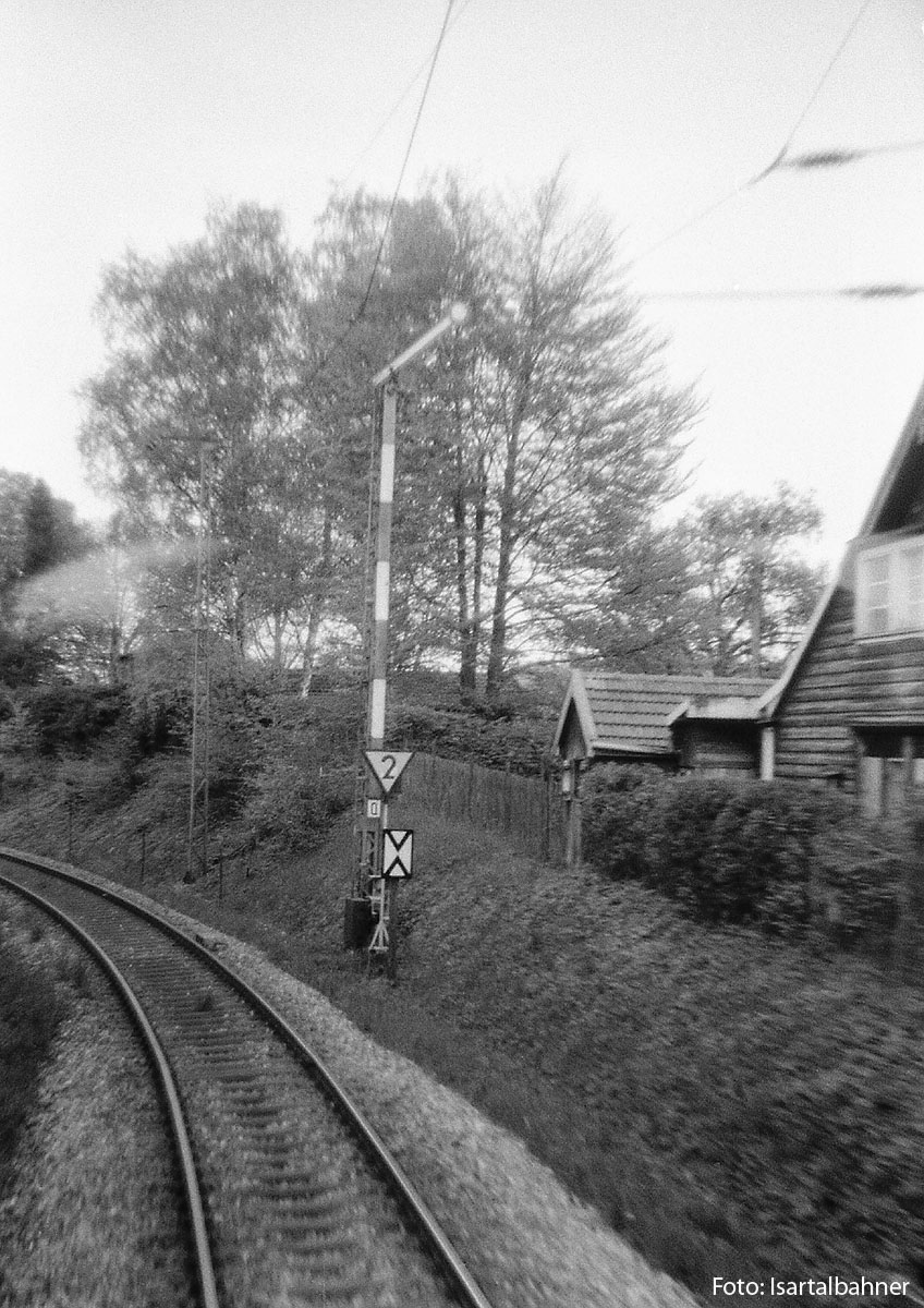 5.) Kurz vor dem Halt lässt sich´s besser erkennen, was noch unter der Brücke zu finden ist, der Bahnübergang der Garmischer Strecke. Linker Bildrand: angeschnitten, aber erkennbar, der Rekord war damals erst jugendliche 13 Jahre alt, oder? | ||||||||||||||