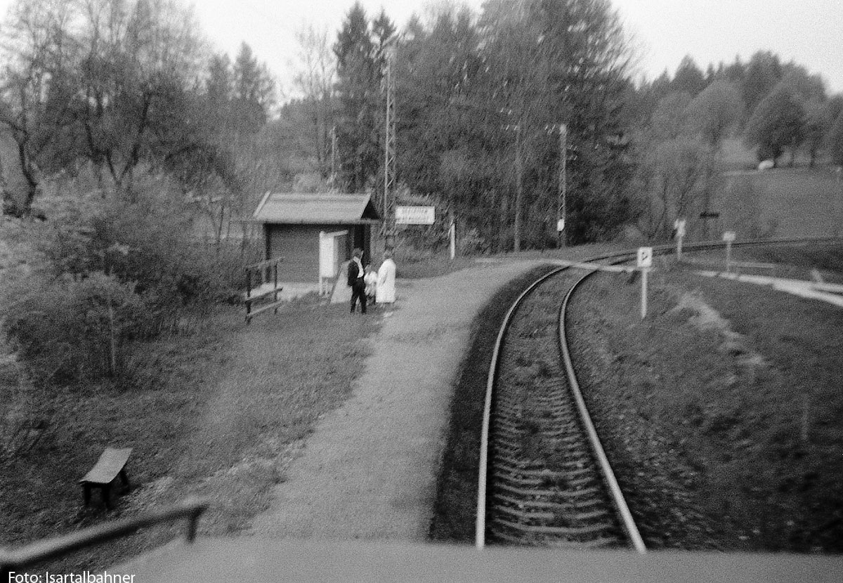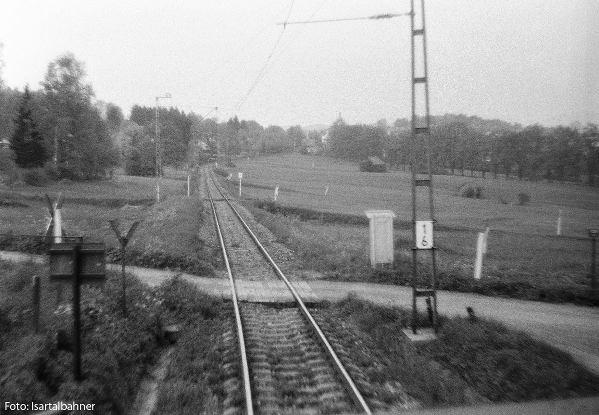 4.) Wenn´s geht, lässt der Herr Lokführer seinem Mädel freien Lauf und ich würg der Kamera mit einem 60tel noch ein Bildchen ab. Hier befand sich bis 1954 der Haltepunkt Ramsachleite (km 1,6). Das bisschen Gras lässt den Bahnsteig sogar viele Jahre nach der Ausserbetriebnahme noch deutlich erkennen. |