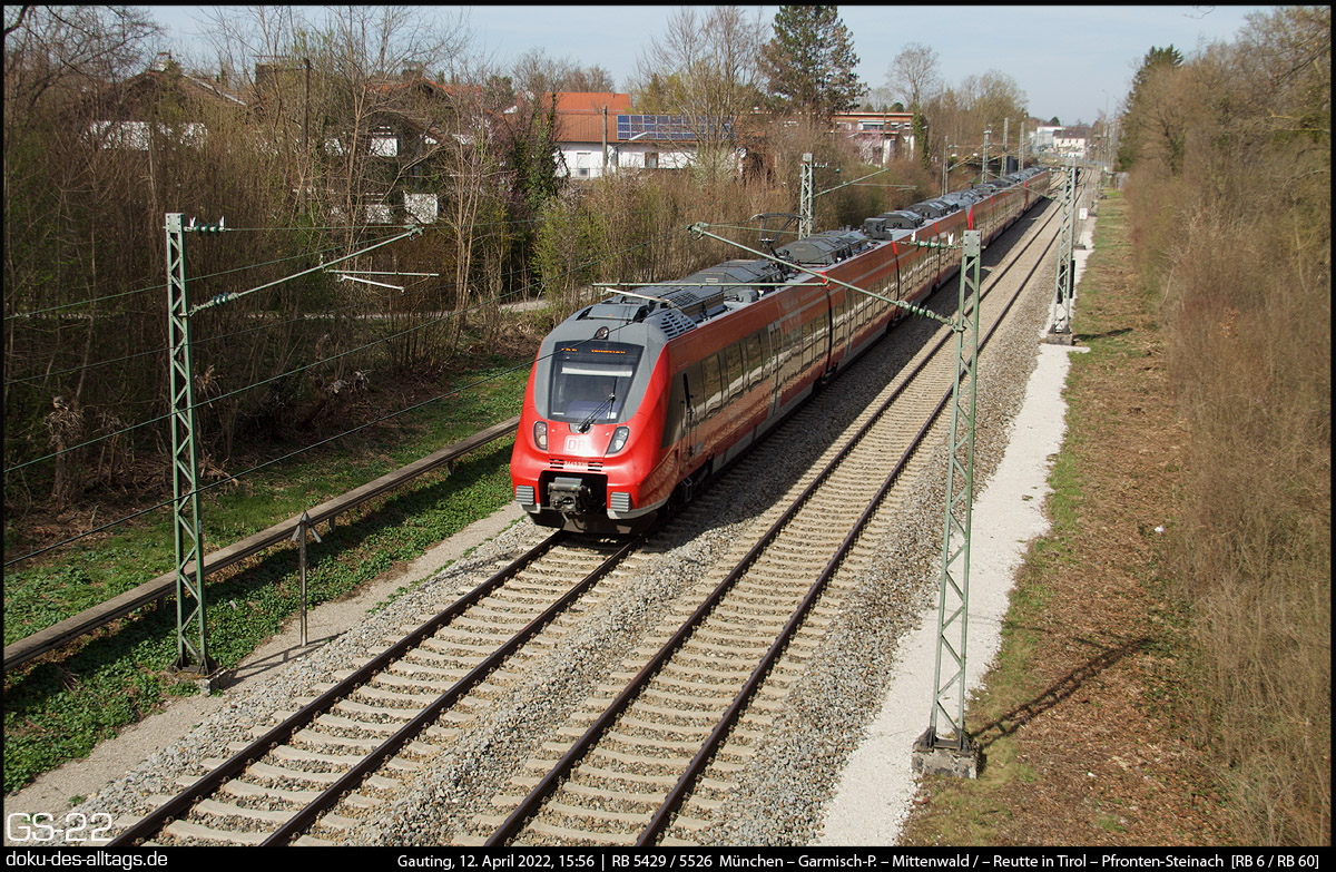 7.) Südlich von Gauting verläuft die Strecke zweigleisig und geht sogleich ins Gefälle bis zum Starnberger See über. 2442 730 ist Richtung Garmisch unterwegs.
