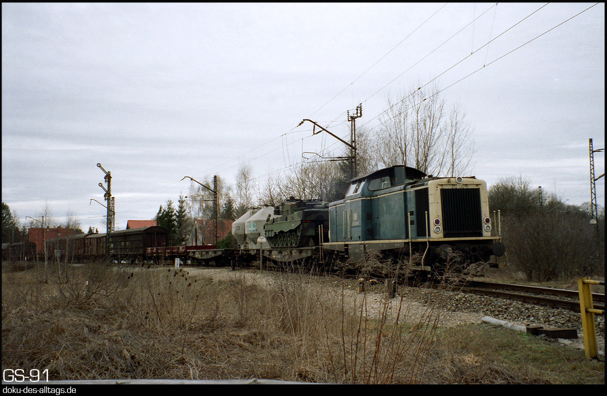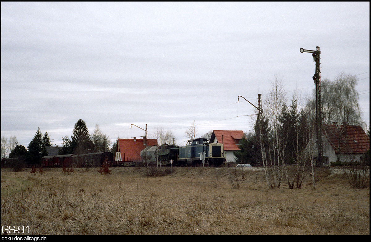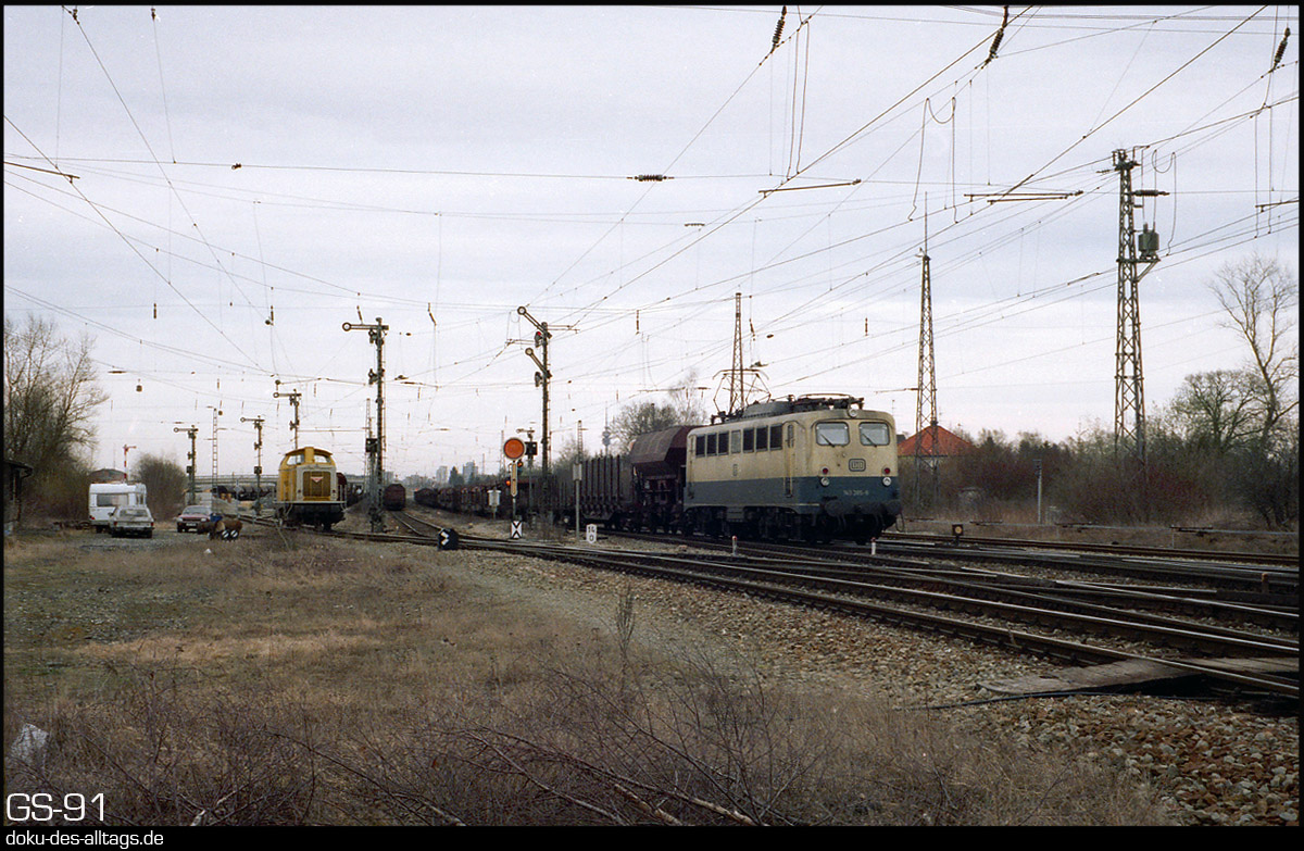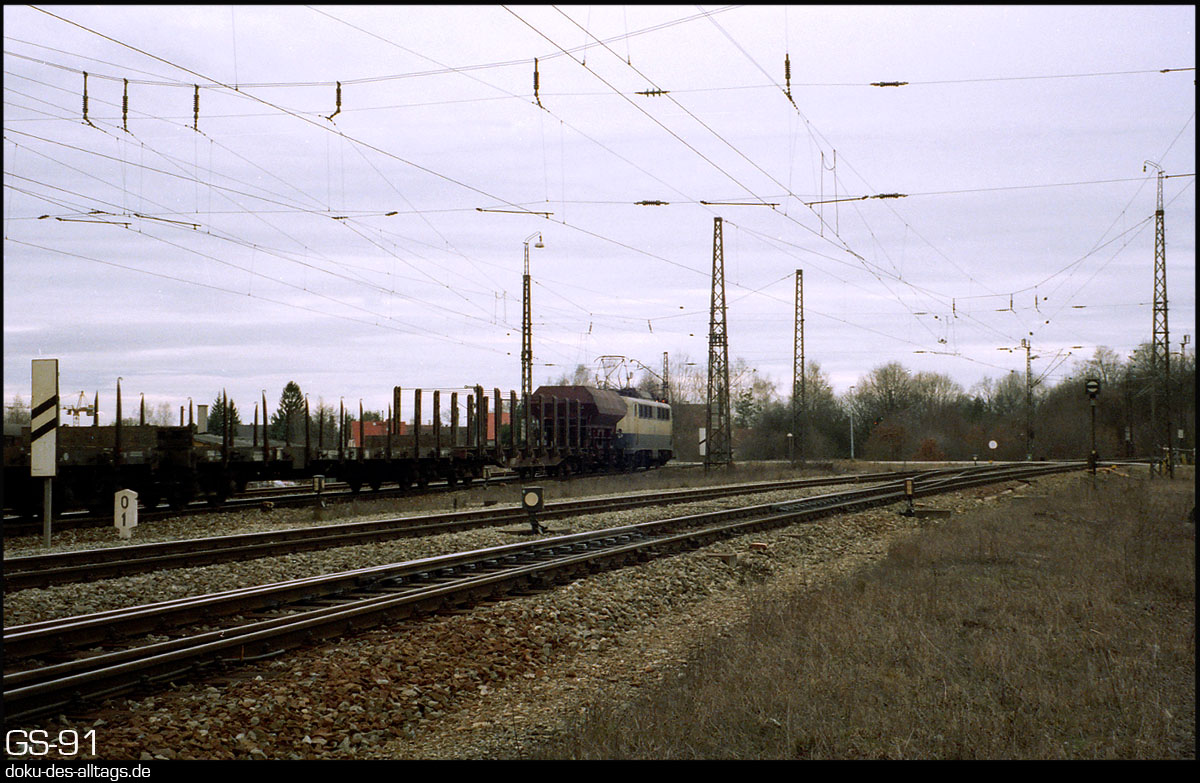 | 6.) Neben dem Wärterstellwerk Lun kommt sie zum stehen. Die verbliebenen Gleise dahinter wurden zum Abstellen von Bau- und Schotterzügen für den Bau des Rbf Nord verwendet. Das Signal ganz links steht am Verbindungsgleis zum neuen Bahnhof. | |||||