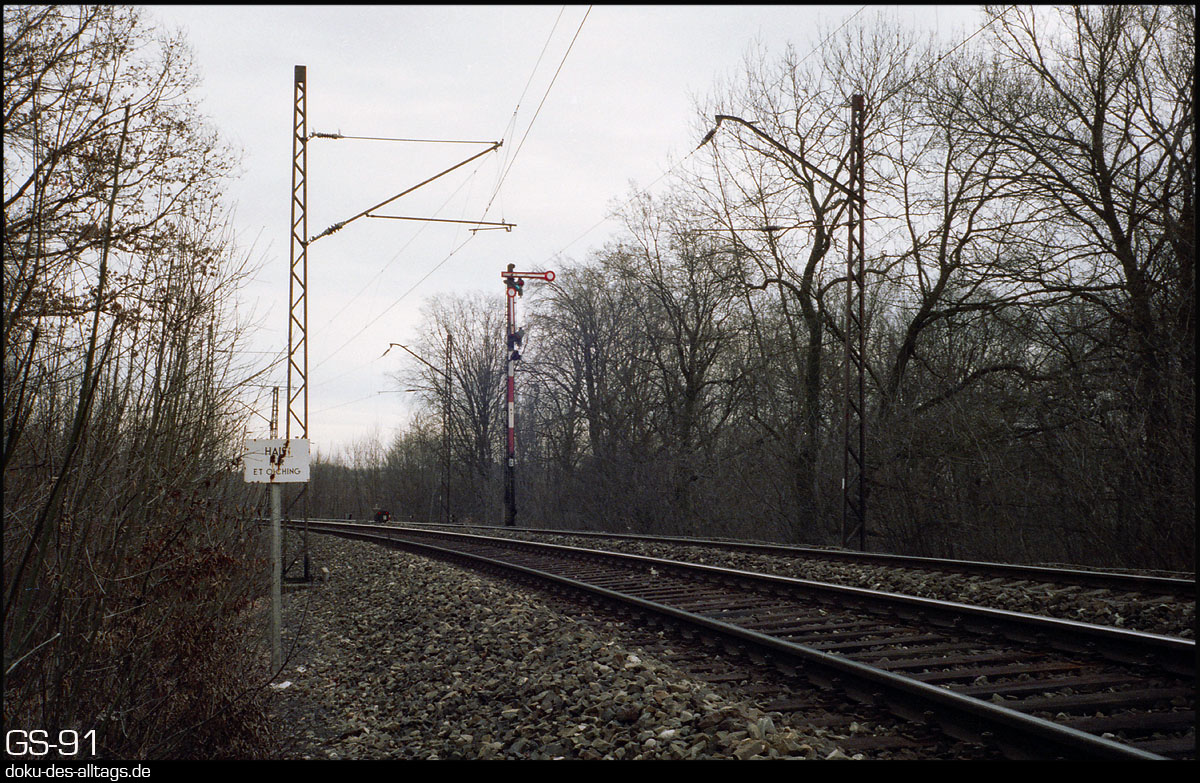 | 3.) Das Einfahrtsignal aus Richtung Olching, das auf Bild 1 von der anderen Seite zu sehen ist. Das Schild Halt - ET Olching gilt für Falschfahrten. | |||||