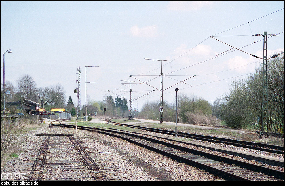 5.) Blick Richtung Westen. Das EG liegt recht weit von den Gleisen entfernt links ausserhalb des Bildes. Es fallen auch die großen Abstände zwischen den Gleisen auf. | ||||||||