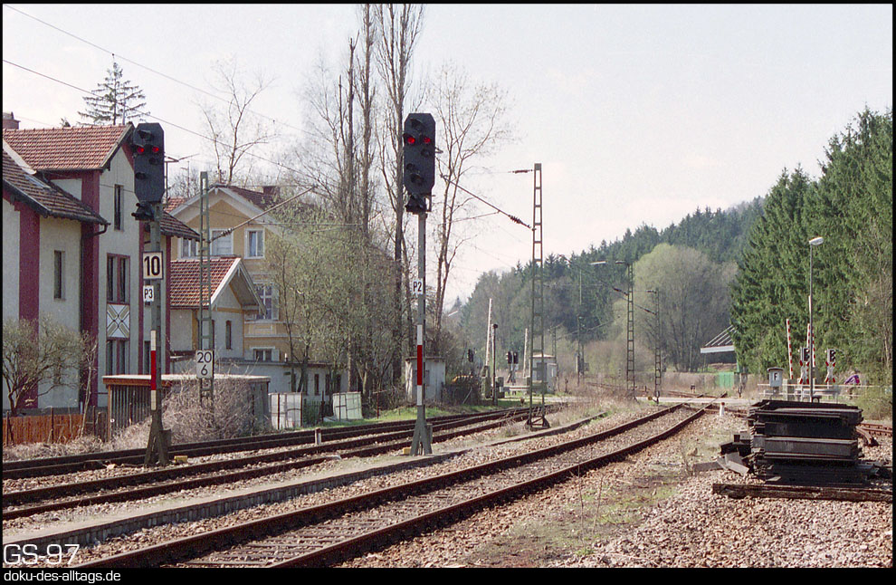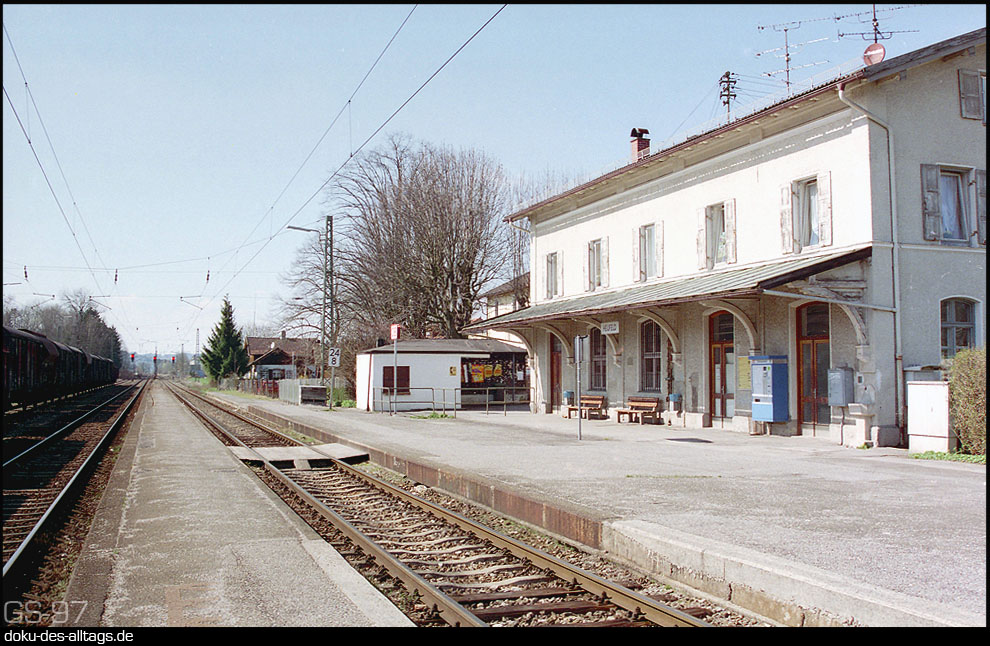 8.) Heufeldmühle in die andere Richtung, Blick vom Holzkirchner zum Rosenheimer Bahnsteig. |