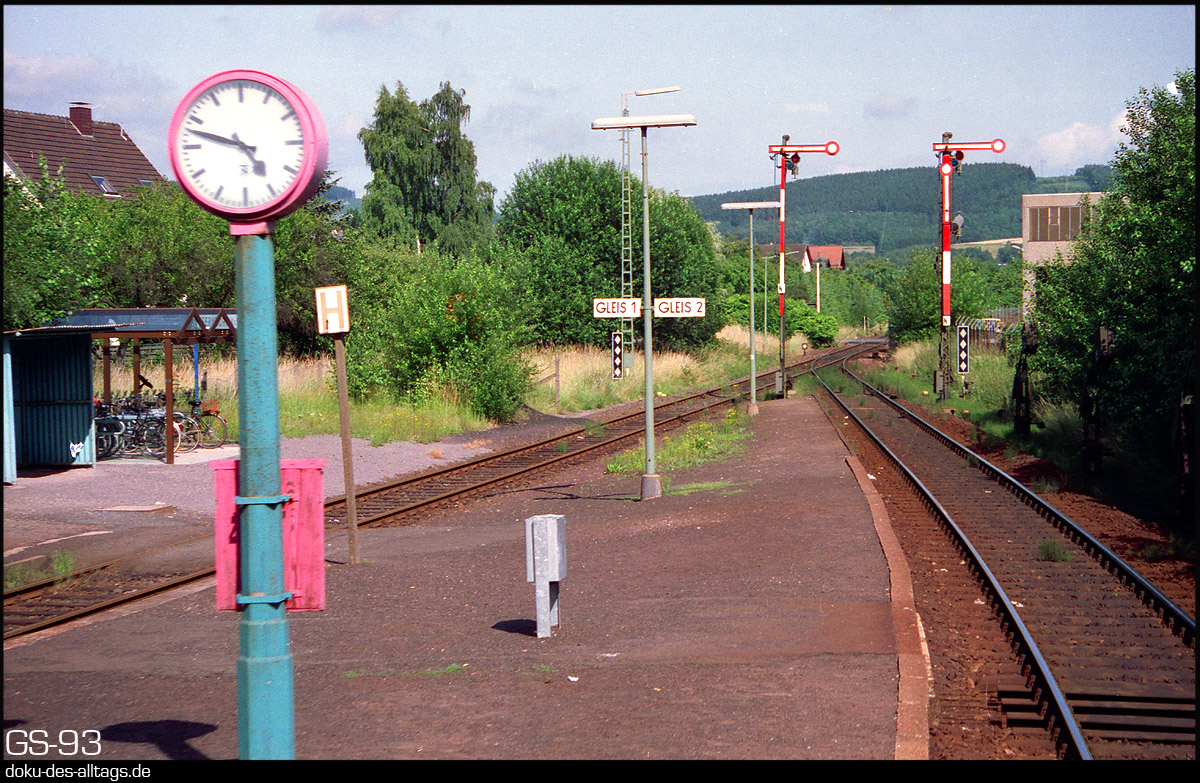 | 5.) In Ferndorf (Kr. Siegen) wird auf Gleis 2 eingefahren, damit die Fahrgäste gefahrlos auf den Bahnsteig kommen. Der Bahnhof liegt am km 1,7 ab Kreuztal. | |||||||