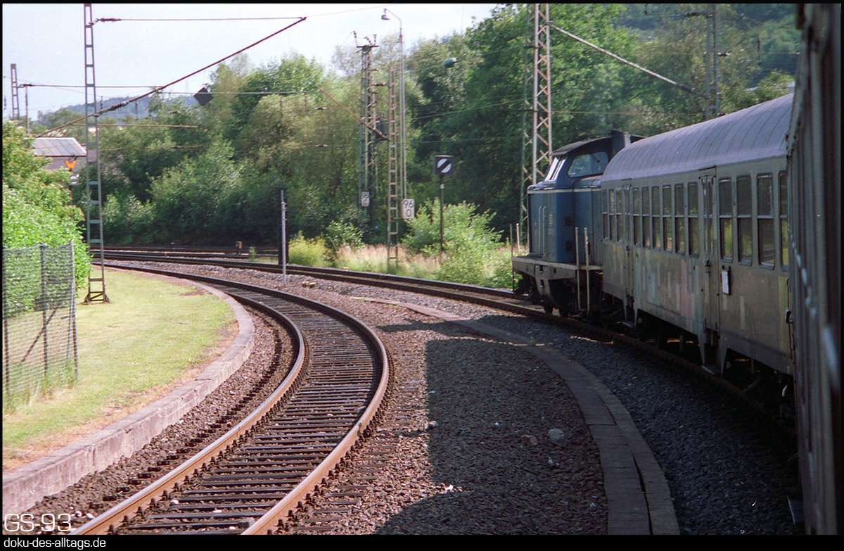 | 6.) Und schon erreichen wir Kreuztal. Beim km 96,0 der Ruhr-Sieg-Strecke mündet die Rothaarbahn in die Hauptstrecke. | |||||||